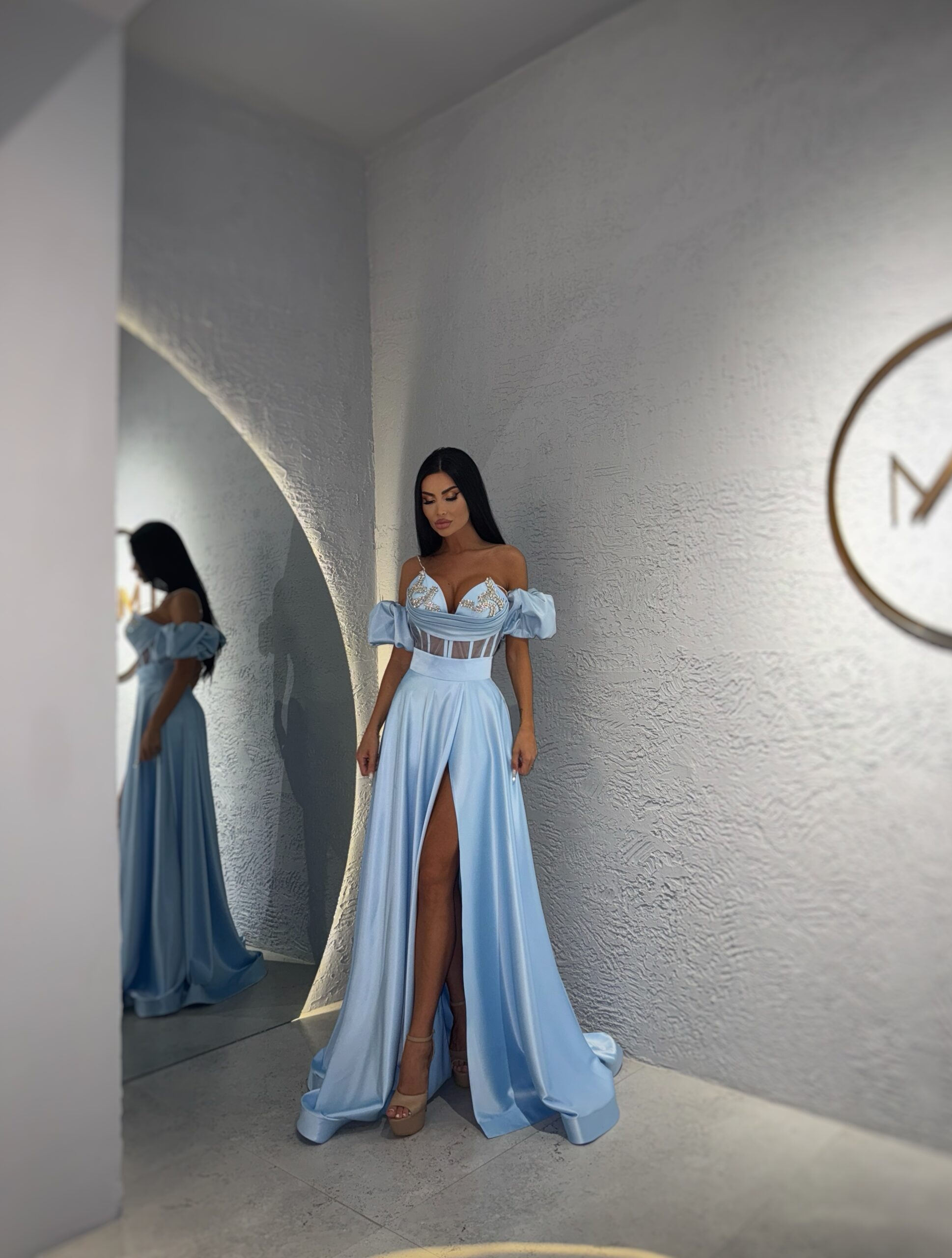 Rochia Athenee Blue by Millionette este alegerea ideală pentru femeile care iubesc luxul autentic și își doresc o apariție de neuitat. Este o piesă couture care transformă orice eveniment într-un moment memorabil.